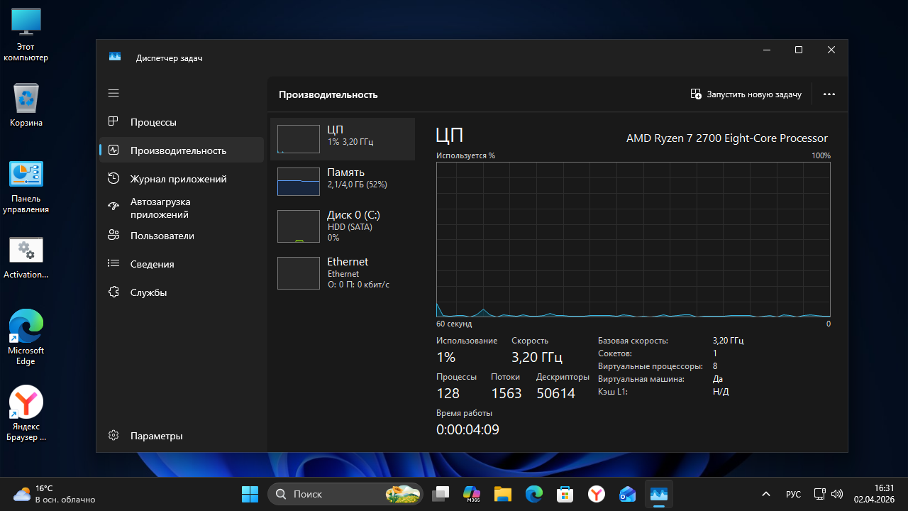 Полностью отключён Microsoft Defender, SmartScreen, Telemetry.