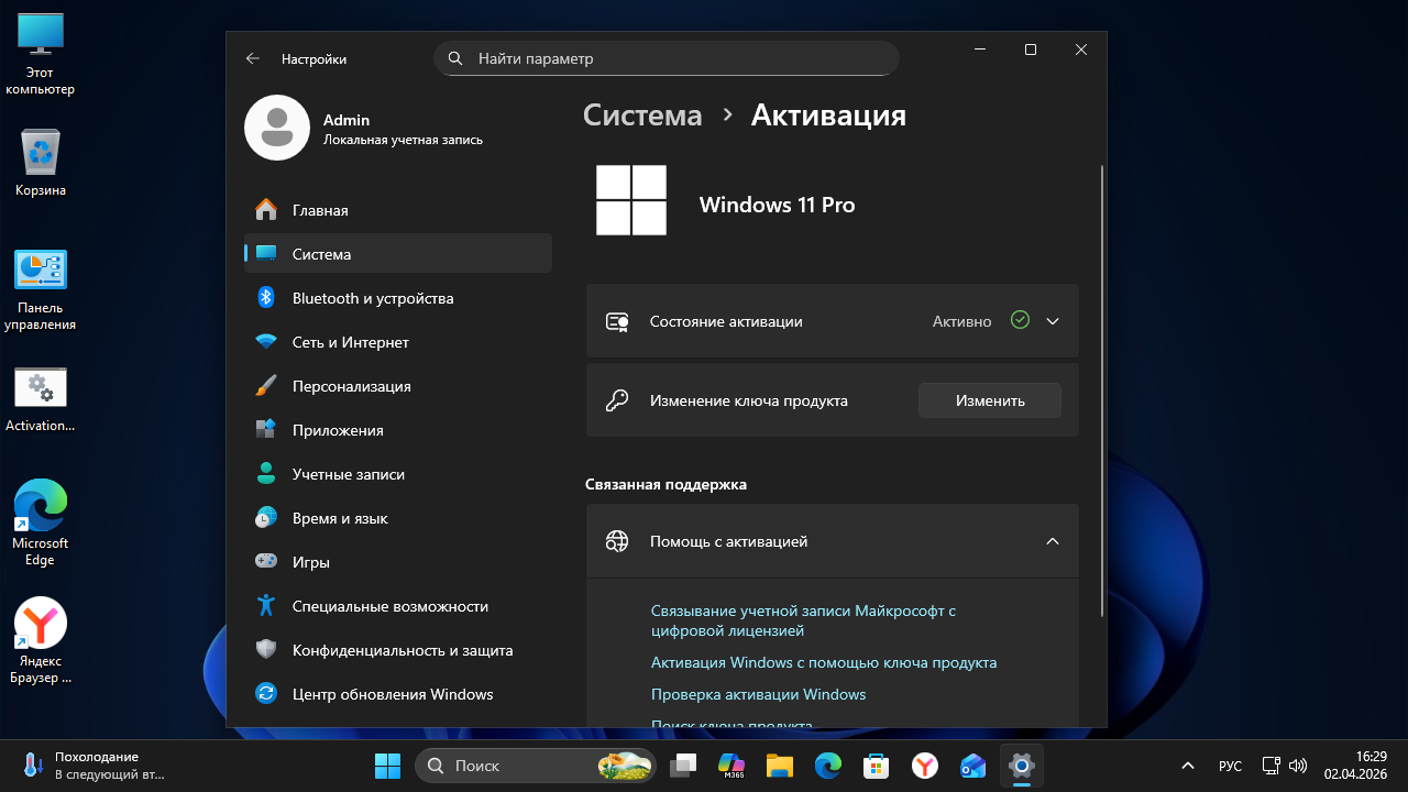 - Активация: Скрипт на рабочем столе