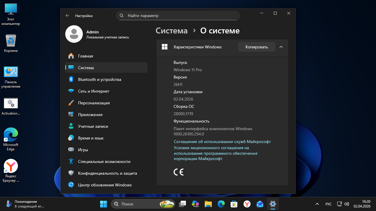 Новейшая версия - Windows 11 26H1 (Build 28000.1719)